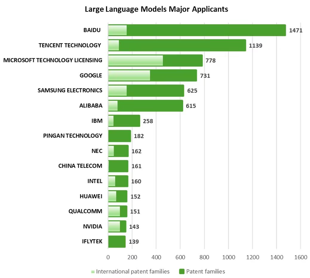 Questel《2025生成式AI专利全景报告》:百度大模型专利申请量全球第一