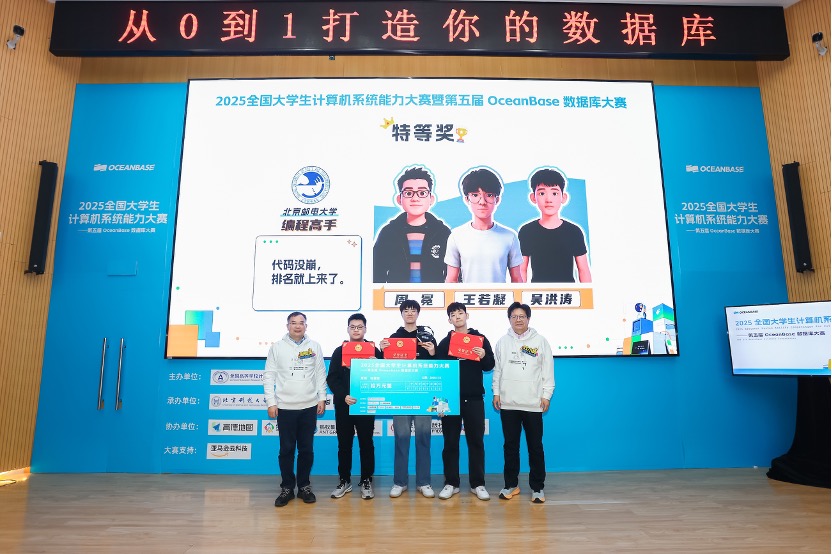 1月18日消息,今天下午,2025年全国大学生计算机系统能力大赛暨第五届OceanBase数据库大赛在北京科技大学落幕。本届赛事吸引全国高校的1223支队伍、2620名学生参赛。经过两个多月比拼,北邮「编程高手」队凭借在数据库内核优化与AI应用开发中的综合表现,夺得冠军及10万元奖金。