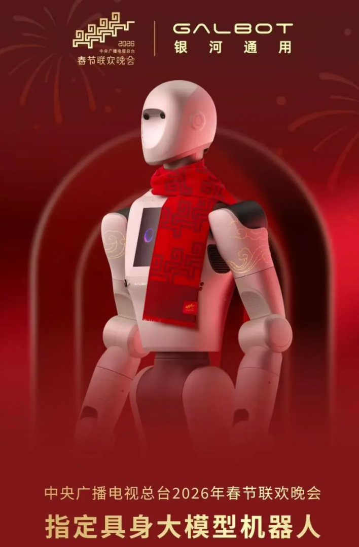 1月25日,中央广播电视总台正式宣布,银河通用机器人成为2026年春节联欢晚会指定具身大模型机器人。