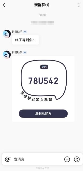 然后,将群信息复制发送给朋友,即可让朋友加入文心APP群。