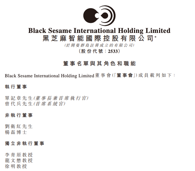 刘卫红先生现年57岁,为黑芝麻智能公司联合创始人之一,在汽车行业拥有超过20年经验。调任后,其作为非执行董事将不领取董事袍金或薪酬。