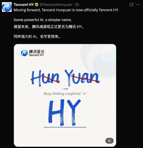 12月10日消息,近日,腾讯在海外社交平台宣布,旗下自研大模型品牌“混元(Tencent Hunyuan)”正式更名为“Tencent HY”,版本号同步升级至2.0。