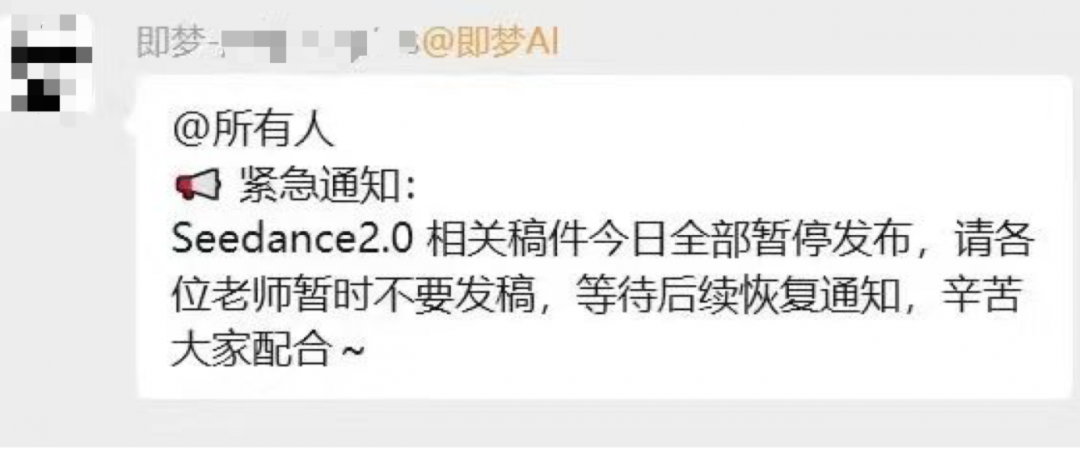 另有消息称,字节方面已经发布紧急通知,暂停对Seedance 2.0的宣传。