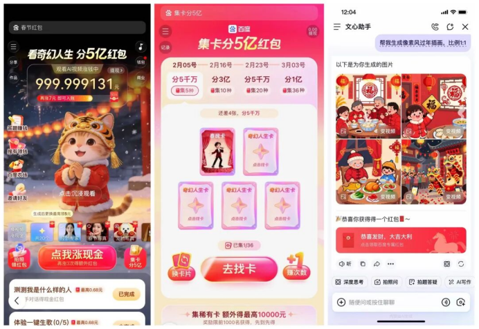 以百度为例,其在设计红包玩法时特意“将红包与拍照搜物、AIGC视频创作等核心功能深度融合”,正是看到了数据积累的长期价值。