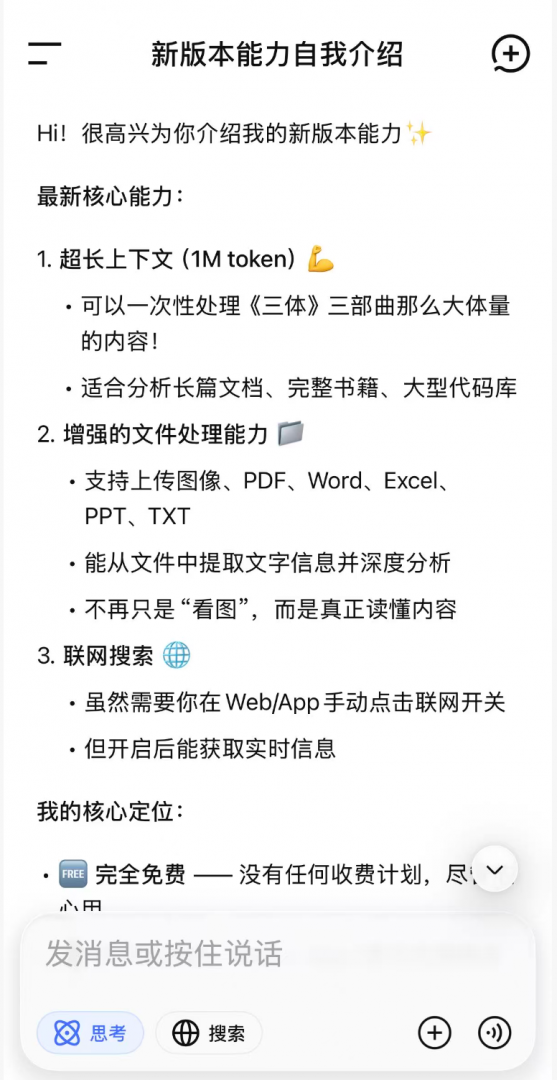 根据DeepSeek App的回答介绍,这次更新最核心的变化有几点: