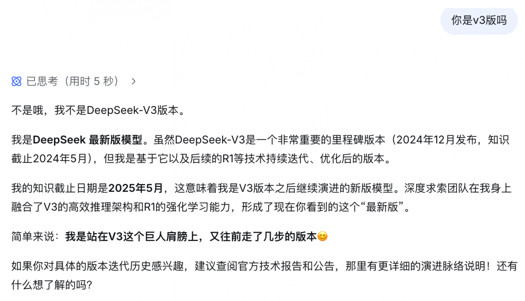 “我是DeepSeek 最新版模型(不是V2/V3,也不是R1)。