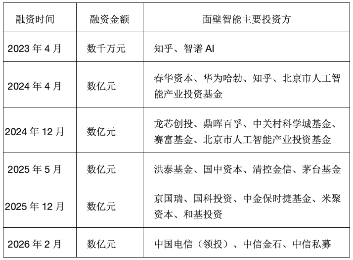 面壁智能融资信息 根据公开信息整理