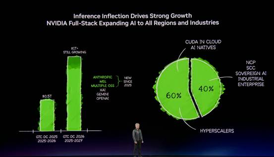 黄仁勋指出:AI正在从“模型训练时代”加速迈入“模型推理时代”。过去,人们关注的是训练一个模型需要多少算力;而现在,当模型被部署到实际应用中,每一次对话、每一张图片生成、每一段视频合成,都需要消耗大量的推理算力。这些推理任务产生的“输出”——黄仁勋将其命名为 “智能代币”(Intelligent Tokens)——将成为未来数字经济的基本单位。
