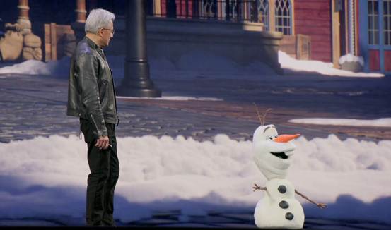 在演讲的最后,一个特别的嘉宾登上了舞台——由英伟达与迪士尼合作开发的机器人 “雪宝”(Olaf)。这个可爱的机器人不仅能够行走、挥手,还能与黄仁勋进行简单的对话互动,展示了其在物理世界中的灵活交互能力。