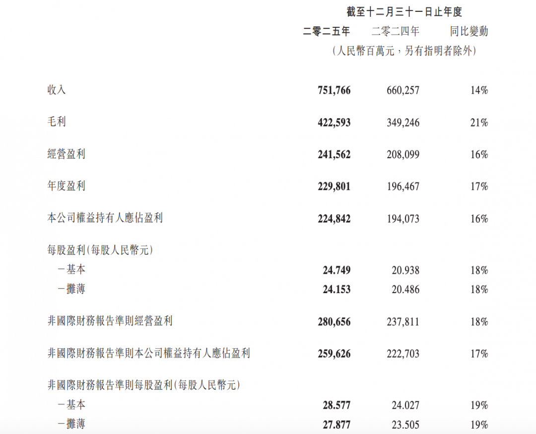 财报显示,截至2025年底,微信及Wechat合并月活跃账户数14.18亿,同比增长2%。