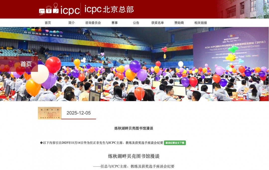 12月5日消息,近日,华为创始人任正非在位于上海的华为练秋湖研发中心与ICPC全球优胜者及教练座谈,围绕AI未来、教育本质与青年成长展开对话,ICPC官网披露了座谈会纪要。