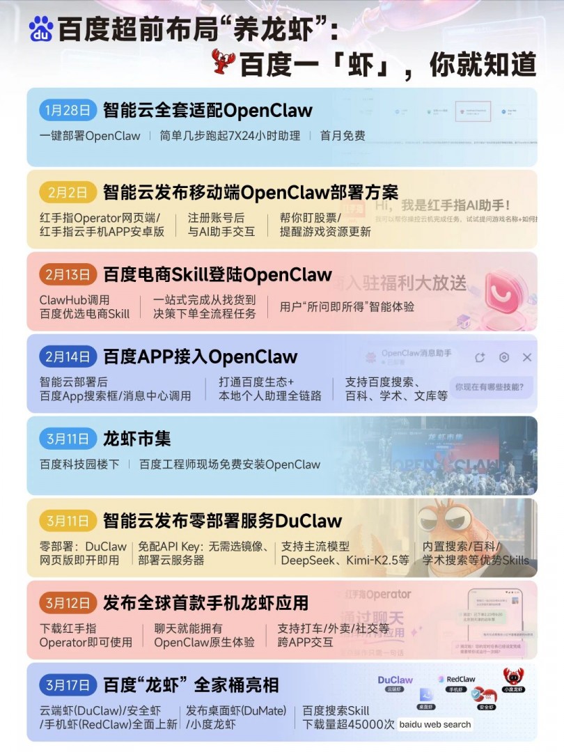 试想一下,如果百度没有在第一时间上下同欲,超前布局“龙虾”,那么一个月后的今天,它已经根本没有几乎上桌了。