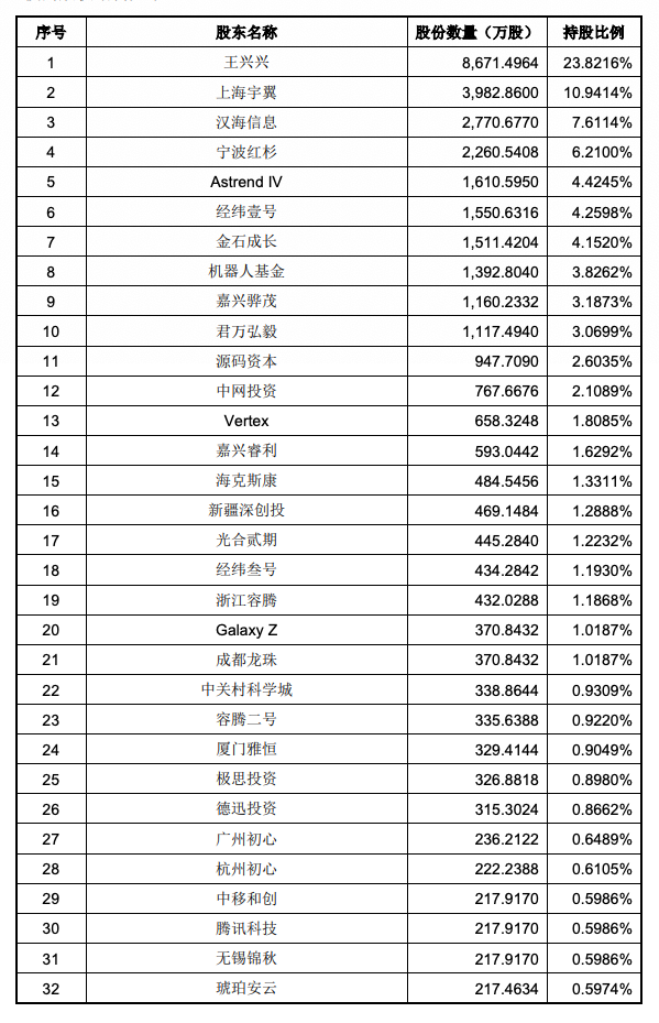 宇树科技的这份股东名单同样星光熠熠。