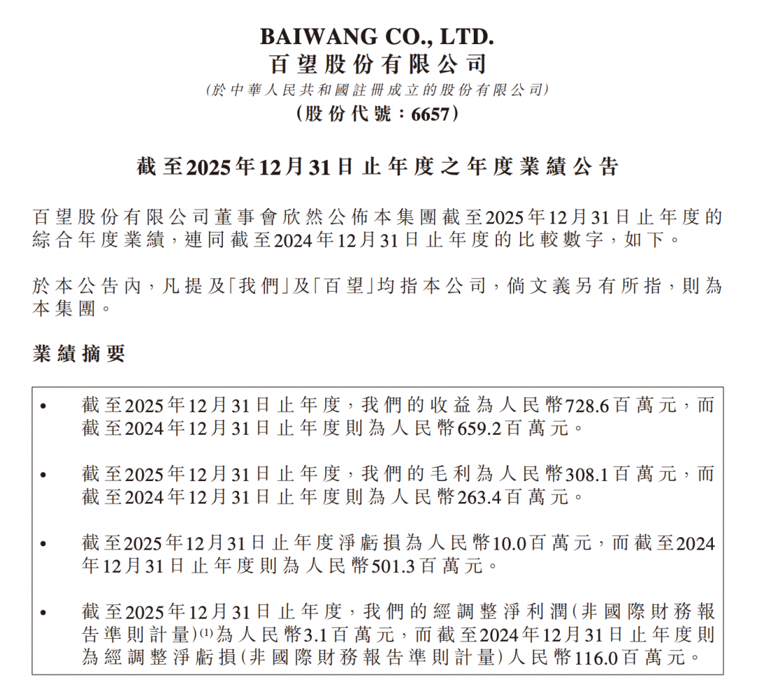 3月25日消息,百望股份(6657.HK)发布2025年度全年业绩报告。2025年百望股份营业收入7.29亿元,同比增长10.5%;净亏损大幅缩减至1000万元,较2024年的5.01亿元亏损收窄98.0%。经调整后,实现净利润310万元,首次扭亏为盈,标志着战略转型初见成效。