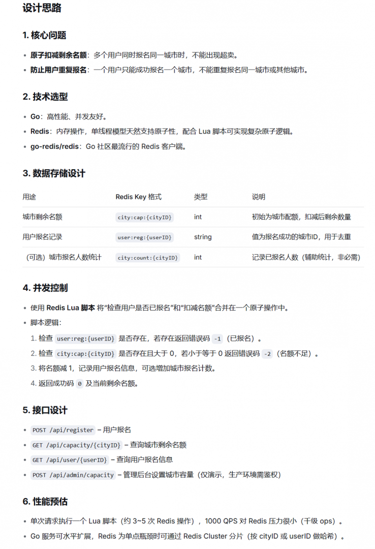 “我正在开发一个高性能的后端服务,每个用户(User ID)在一定时间开始选择城市用于报名。