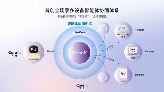 可悠首创全场景多设备智能体协同体系,核心依托“同一个灵魂,不同载体”的底层架构创新,自研智能体协同中枢实现车、家、办公全场景的智能服务无缝衔接,让 AI 真正贯穿用户生活全链路。