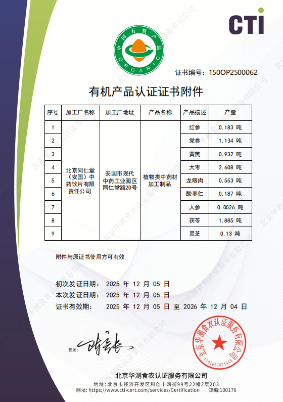 此次获得有机产品认证,标志着安国公司在中药材有机加工质量管理体系方面符合国家规范,是对企业从原料接收到成品出厂全过程控制能力的认可。企业有能力为消费者提供更多可信赖的有机产品,顺应了市场对高品质、可追溯中药制品日益增长的需求。