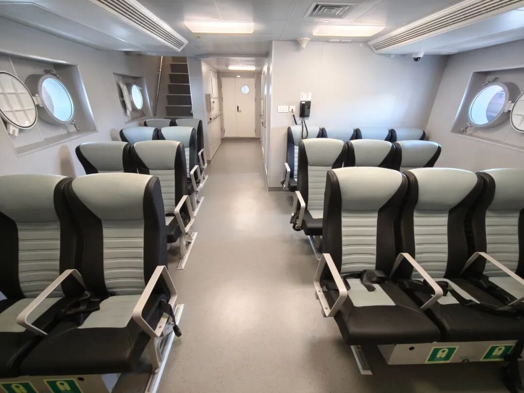全船水幕系统与8个消防栓出口形成立体防护,可高效应对海上石油及液化天然气火灾。船载小艇自动回收系统则提升了人员搜救的灵活性与效率,尽显江龙船艇的实战化设计匠心。