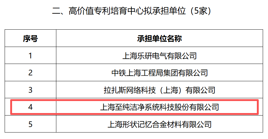 至纯科技荣获“上海市高价值专利培育中心”认定