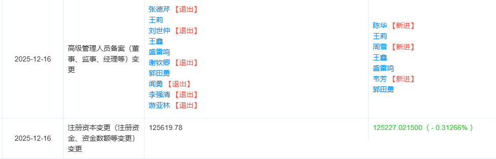 天眼查信息显示,12月16日,贵州茅台(600519)(600519.SH)工商信息发生变更,张德芹卸任法定代表人、董事长,由陈华接任,同时部分主要人员也发生变更。