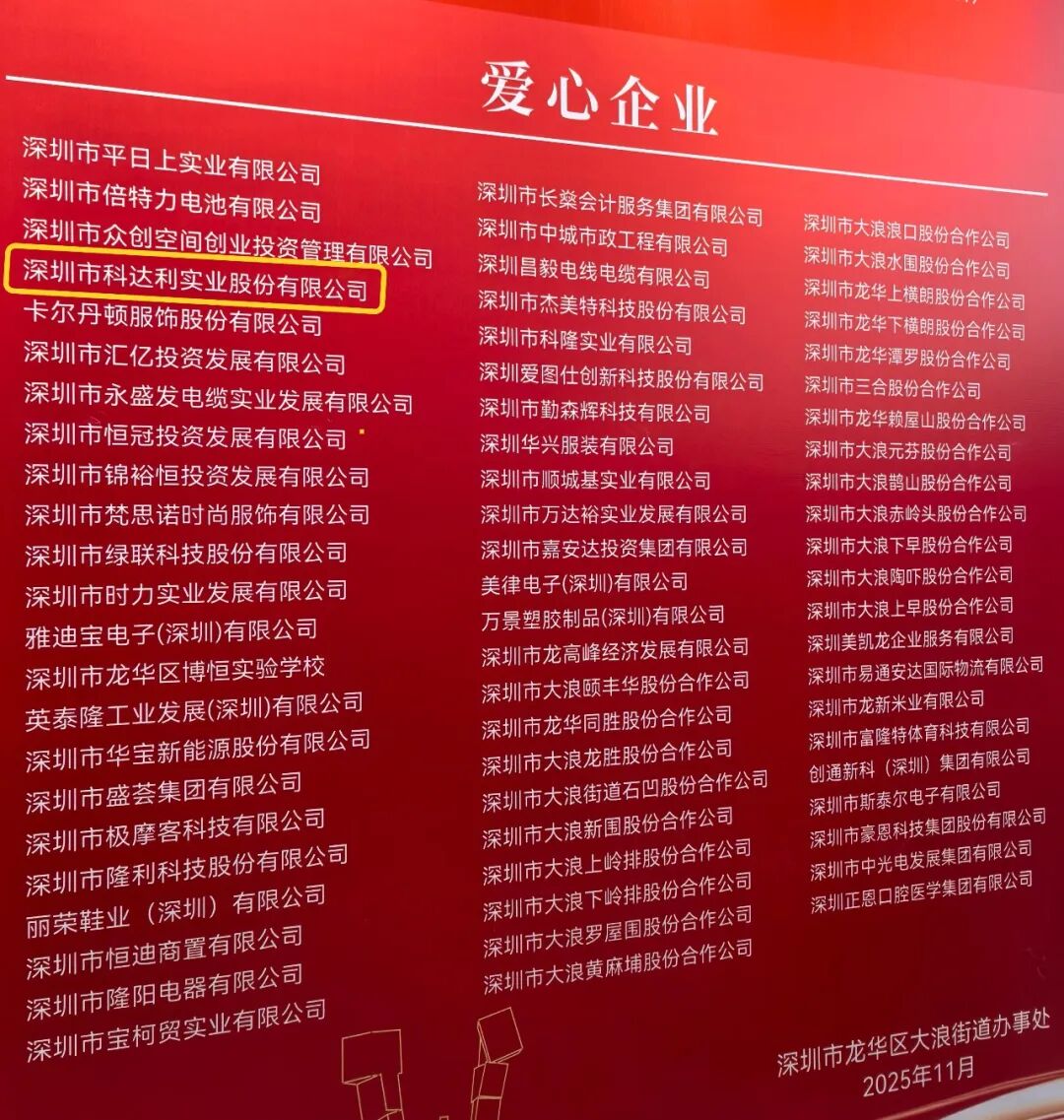 深圳市科达利(002850)实业股份有限公司作为本次会议的赞助单位,凭借长期以来对社区发展的持续投入与积极贡献,被大浪街道办事处再次授予“爱心企业”荣誉称号。