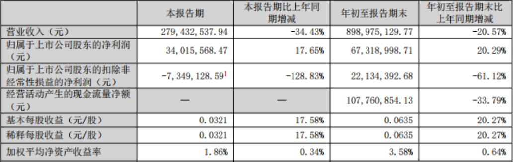时至今年前三季度,公司实现营收8.99亿元,同比下滑20.57%;实现归母净利润0.67亿元,增幅两成。扣除非经常性损益后,归母净利润为0.22亿元,降幅深达61.12%。