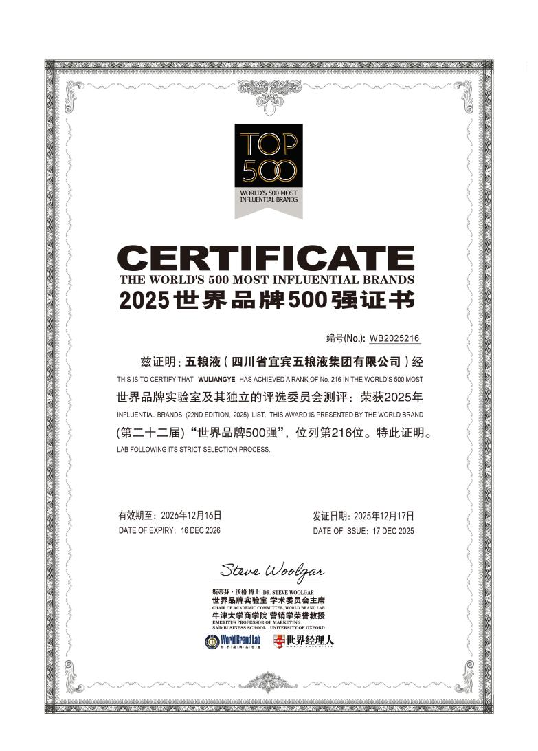 12月17日,由世界品牌实验室(World Brand Lab)发布的2025年度(第二十二届)《世界品牌500强》排行榜揭晓,五粮液(000858)连续9年上榜,位列216位,较去年上升3位,品牌排名增幅位居烈酒行业第一。