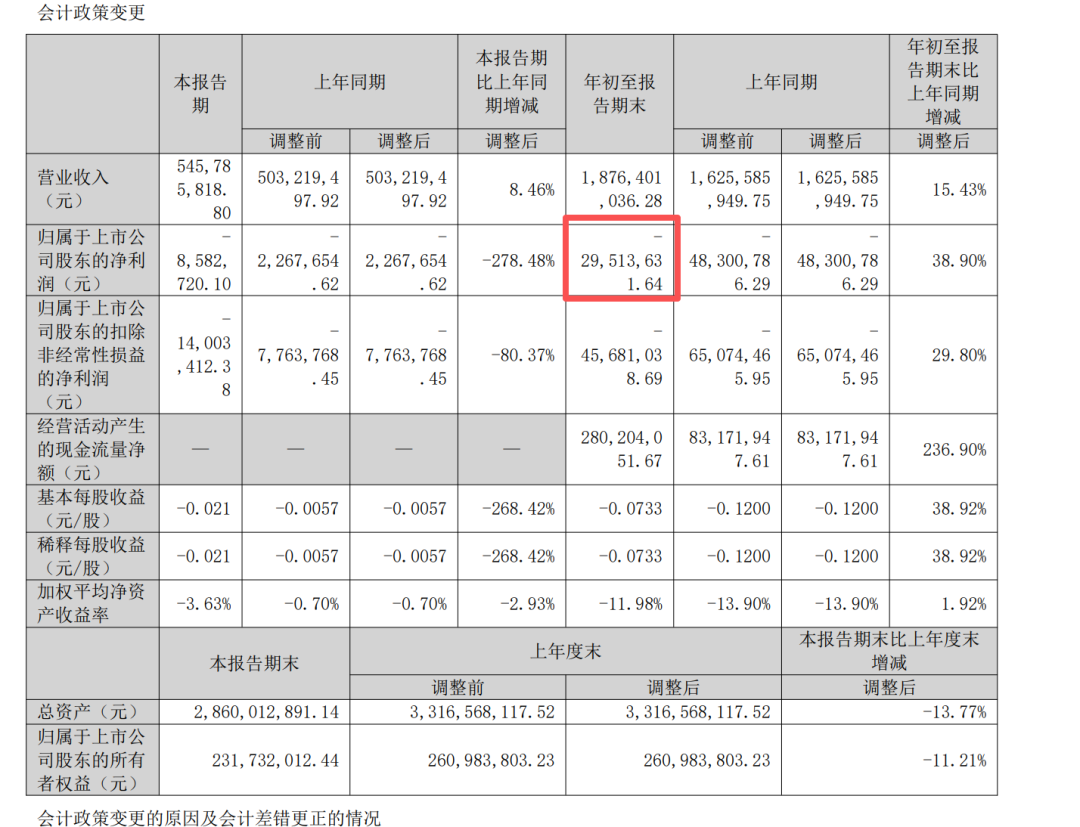 今年前三季度公司依然面临亏损,营业收入为18.76亿元,同比上升15.43%;归母净利润-2951.36万元。