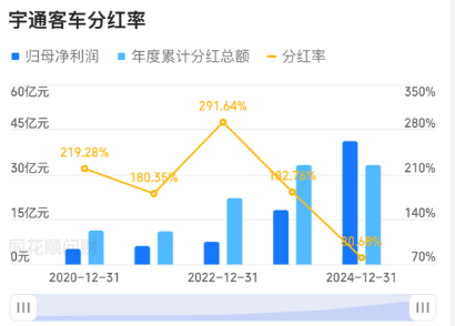 2024年,宇通客车营业收入372亿元,增长37.63%,2025年前三季度263.7亿元增长9.52%;2024年,公司实现净利润41.16亿元,增长126.53%,2025年前三季度32.92亿元,增长35.38%;2024年,经营活动产生的现金流量净额为72.11亿元,增加25亿元,同比增长52.87%;2024年度净资产收益率高达30.94%,2025年前三季度达到24.20%。