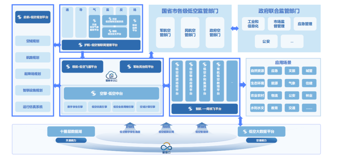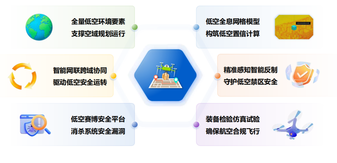 启航·低空规划平台融合低空全量环境要素,基于低空全息网格,进行低空全要素规划;领航·低空飞行综合监管服务平台,拉通全链路低空安全运行监管,为低空管理单位、监管机构和飞行用户提供高效协同的一体化管理与服务;天信·低空气象服务平台,提供不同场景低空气象预报服务;“天驭”系列低空智联与反制系统,可进行全域覆盖监管、全时段常态化治理,实现了从“控在地、零升空”的安保模式到“管到位、放到底”转型升级;御航·低空反无平台基于低空全息网格技术,进行雷光电声等多种探测与反制效能分析,利用目指情报大模型与监视探测数据智能融合分析,智能生成最优防控策略,构建高效指控数据链,快速实施反制和目标追踪溯源,全面赋能低空安全治理。
