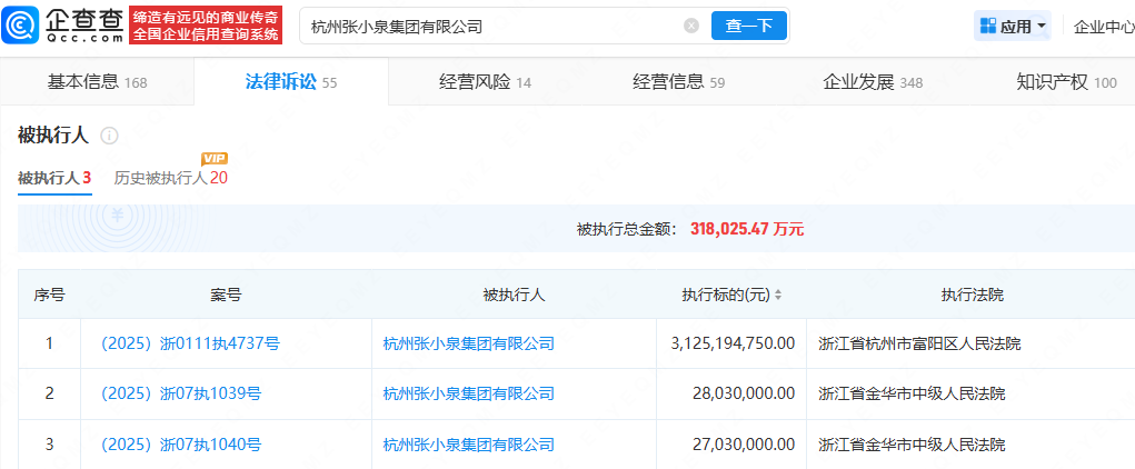 企查查风险信息显示,该公司关联多条被执行信息,被执行总金额超31亿元,公司已被限制高消费,并被列为失信被执行人。值得一提的是,除了小型轿车,张小泉集团所持张小泉(301055.SZ)的股票也多次遭拍卖。