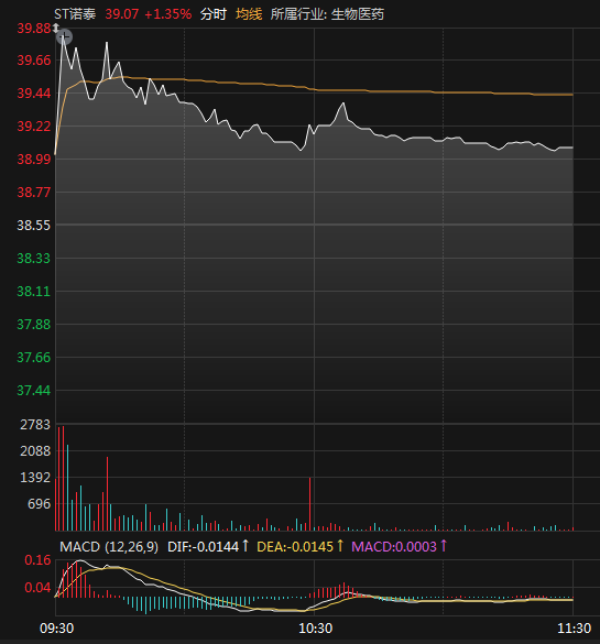 截至12月18日午间休市,ST诺泰涨1.35%,报39.07元/股。