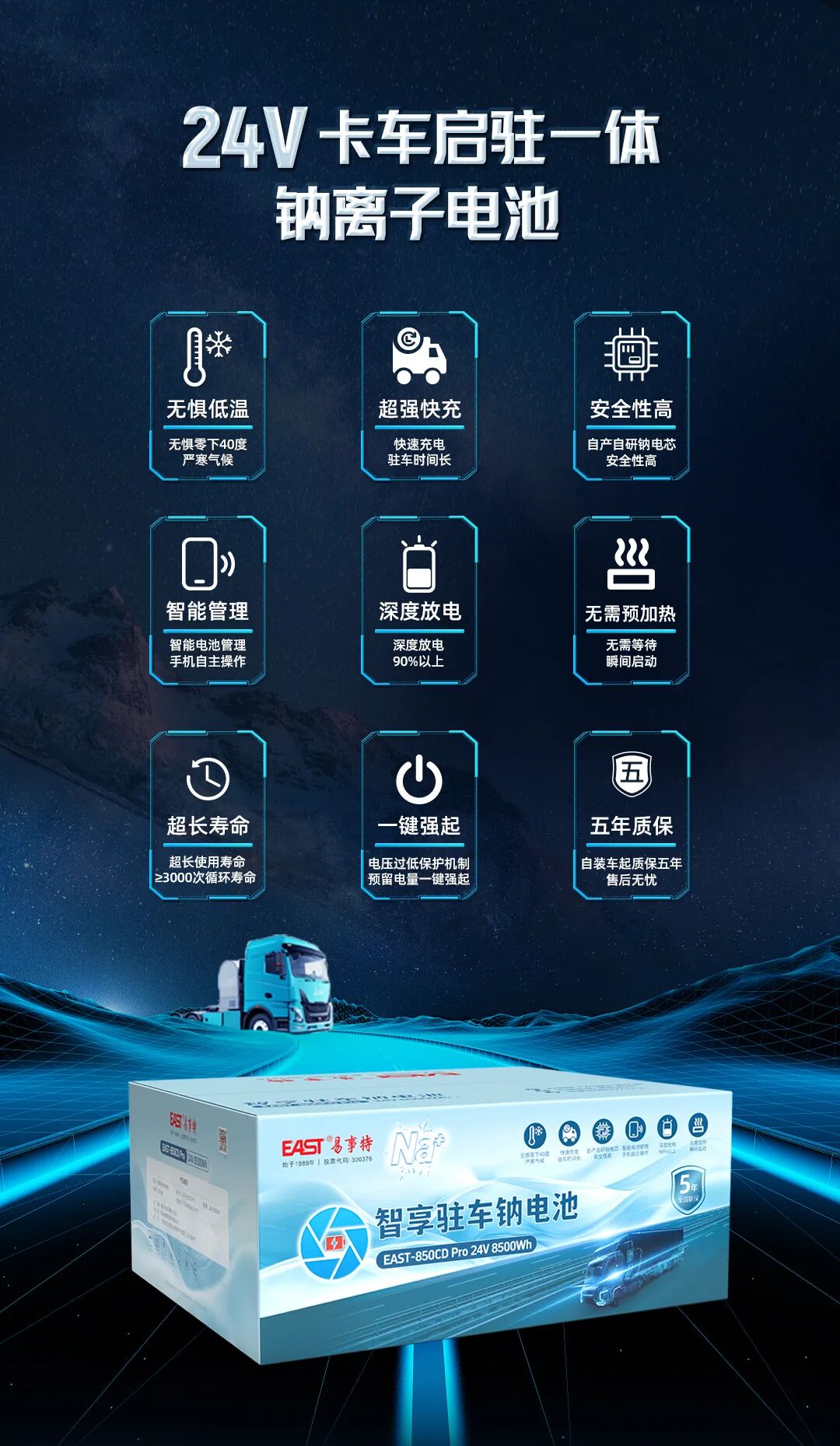 钠电池!易事特24V卡车启驻一体钠离子电池新品上市