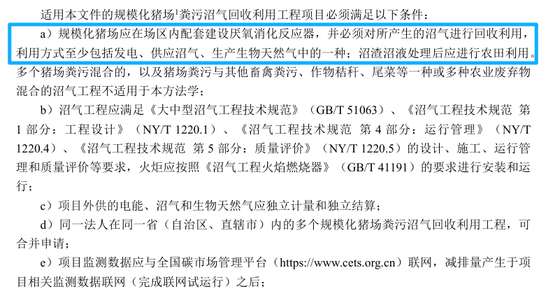 重磅!生态环境部与农业农村部联合发布《温室气体自愿减排项目方法学 规模化猪场粪污沼气回收利用工程(CCER—15—001—V01)》《温室气体自愿减排项目方法学 农业废弃物集中处理工程(CCER—15—002—V01)》(以下简称《方法学》)两项新方法学!