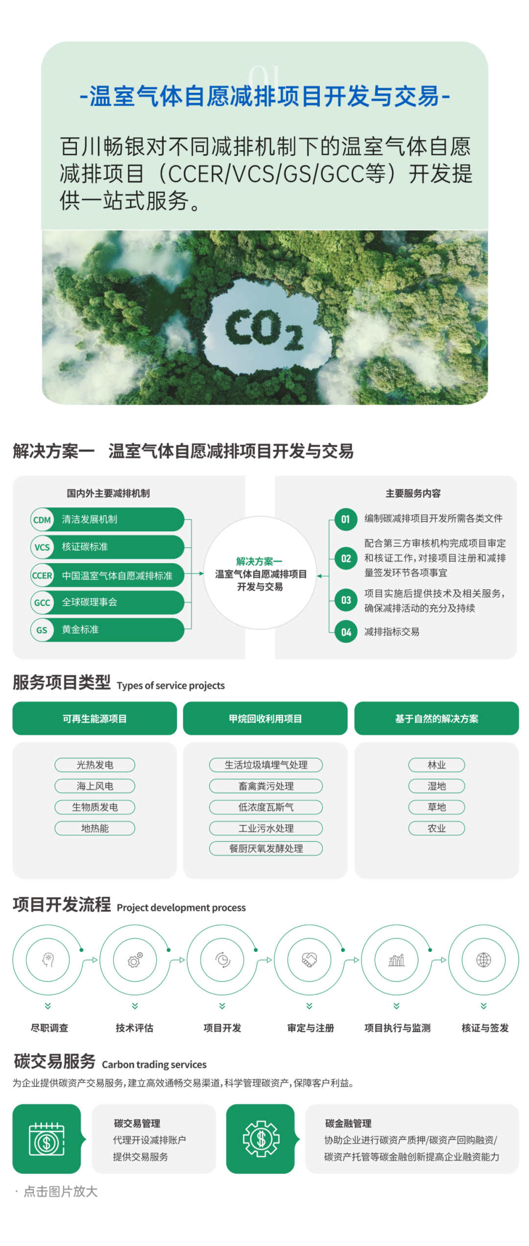 同时,百川畅银也具备丰富的碳减排项目开发经验,可为客户提供温室气体自愿减排项目开发与交易及碳中和服务。
