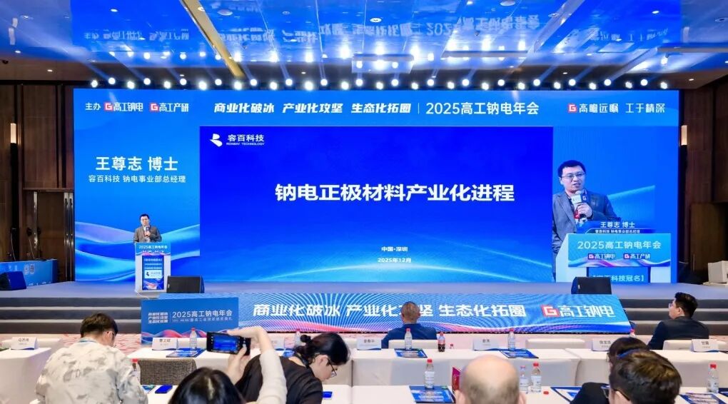 2025年12月12日,以“商业化破冰、产业化攻坚、生态化拓圈”为主题的高工钠电年会在深圳成功举办。作为专场冠名方之一,容百科技与产业链上下游企业、应用端及投资机构代表齐聚一堂,共同探讨钠电产业发展路径。容百科技钠电事业部总经理王尊志博士应邀发表“钠电正极材料产业化进程”主题演讲,分享公司在钠电正极材料产业化进程中的战略布局与最新突破。同期,在2025高工金球奖颁奖典礼上,容百科技凭借其在钠电材料领域的前沿创新成果,荣获“年度创新产品”奖项,彰显了行业对其技术实力与产品竞争力的高度认可。