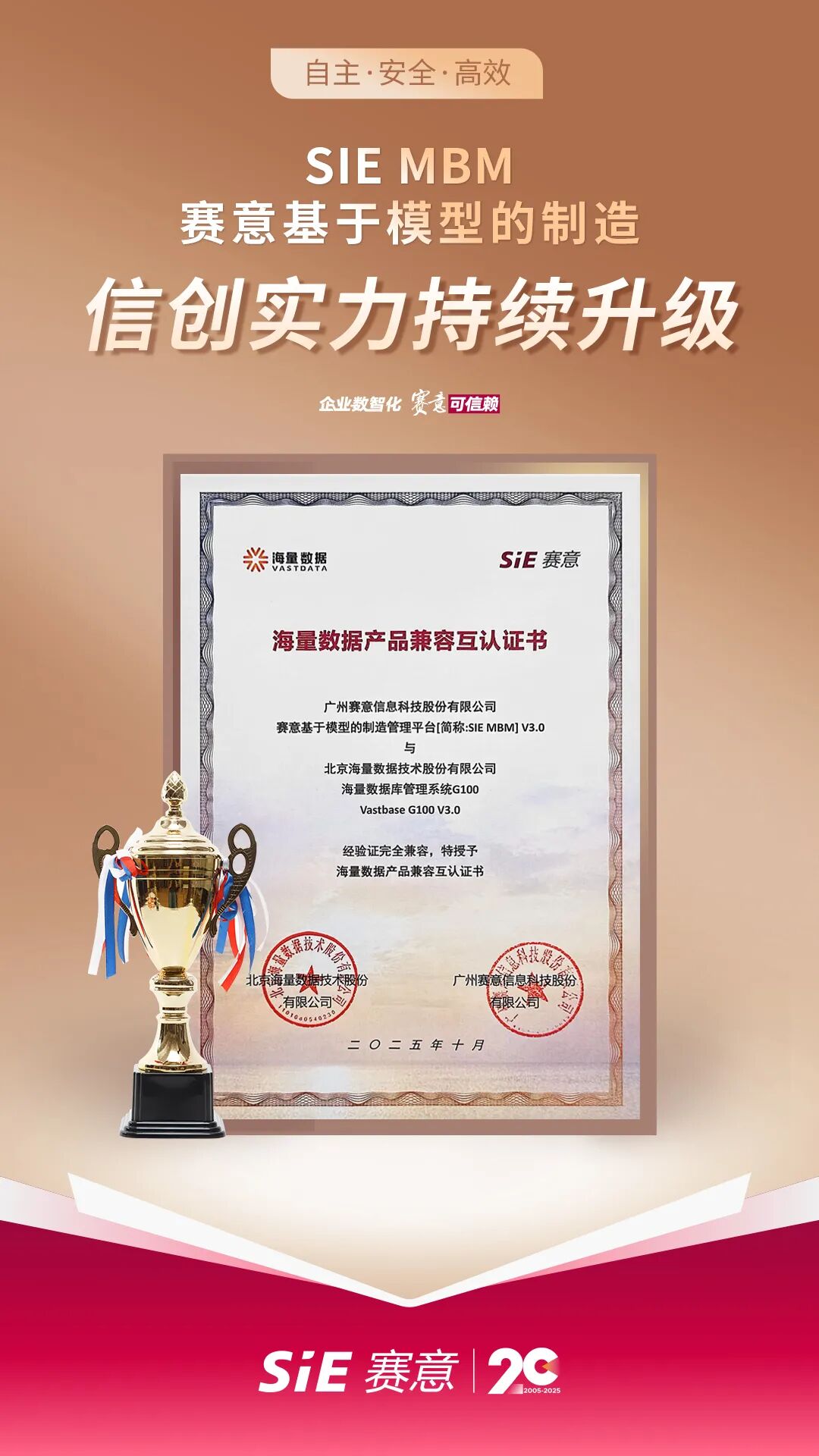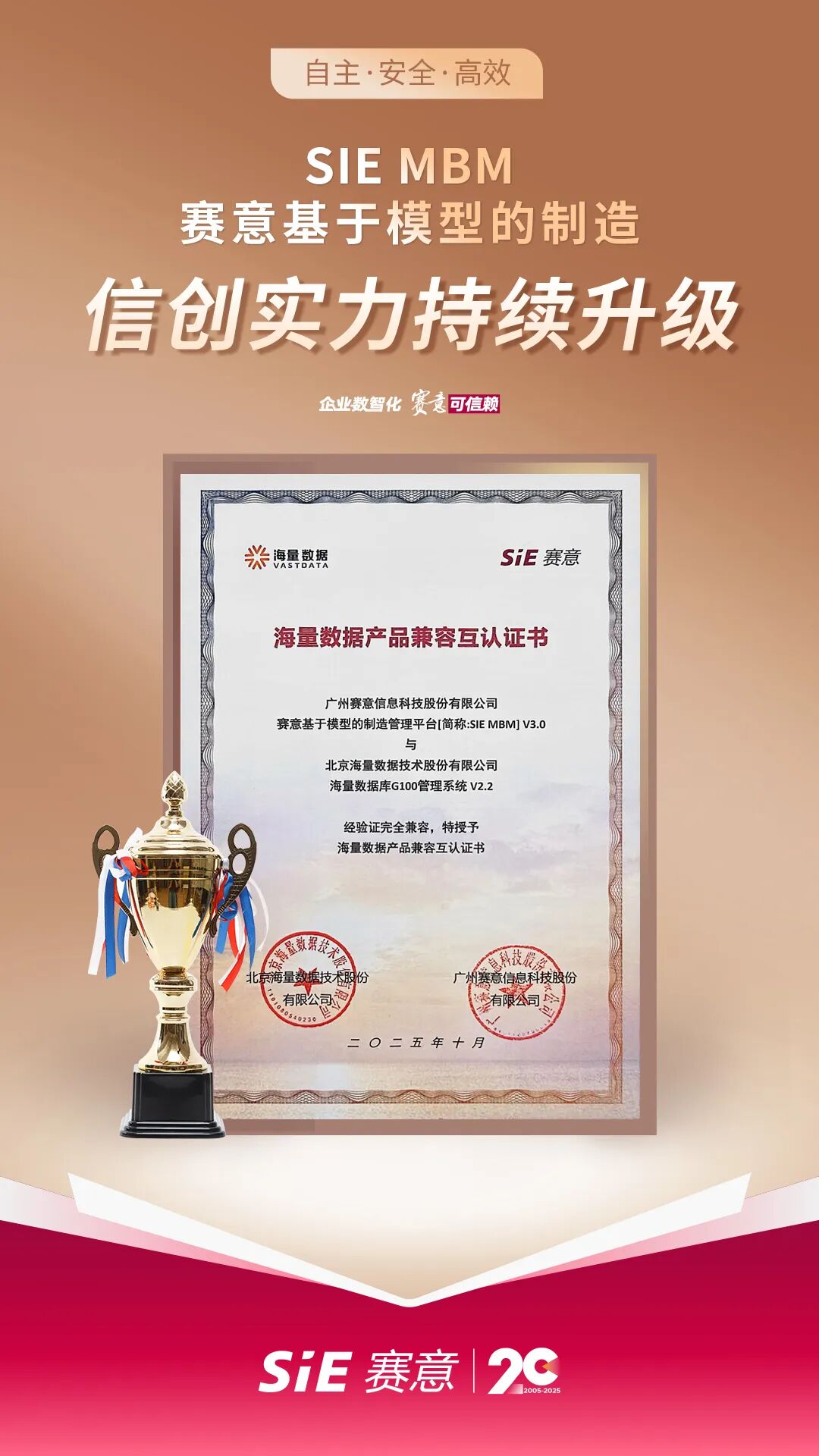 近日,赛意基于模型的制造SIE MBM V3.0顺利通过海量数据(603138)信创产品兼容认证。经过双方联合严格测试,赛意MBM产品能够与海量数据库G100管理系统 V2.2、Vastbase G100 V3.0系统版本实现完全兼容,系统运行稳定高效,在功能、性能及兼容性方面表现优异,可充分满足工业企业在不同使用场景下的业务需求。