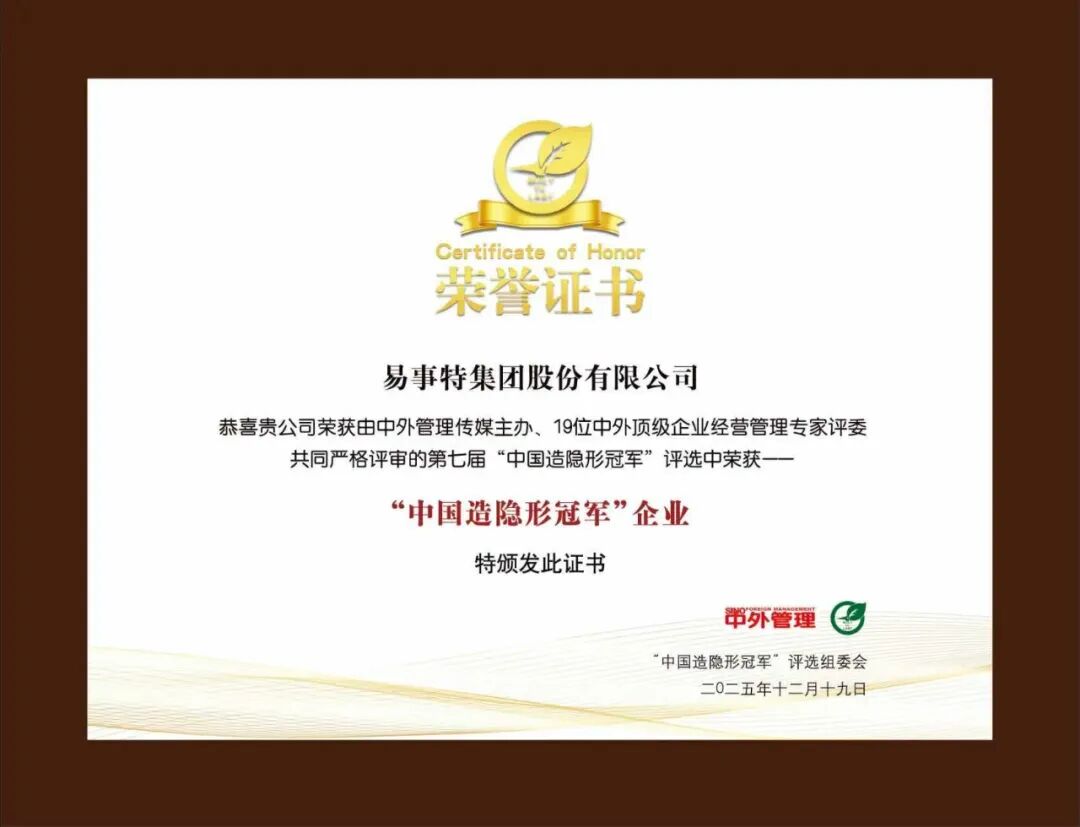 12月19日,第七届“中国造隐形冠军”颁奖典礼在北京隆重举行。易事特集团凭借在“AI+新能源”领域的技术实力与全球竞争力,成功获得“中国造隐形冠军”殊荣,实力印证其行业领军地位!