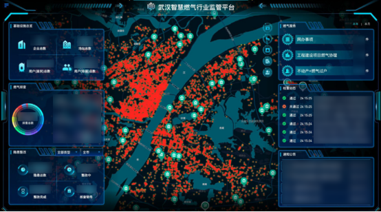 武汉市燃气安全监管平台为城镇燃气领域安全治理提供了优秀范本。该市依托数字政通技术打造了“智慧应用+闭环管理”的“武汉模式”,实现了燃气领域“企业自管、政府监管、一网统管”的治理目标。平台整合各类燃气管线30000余公里,接入43家燃气企业、448座燃气场站、175万余只钢瓶、4.72万非居用户、505.93万居民用户基础数据。2023年至今累计开展日常安全检查52万余次,专项检查180万余次,整改各类问题隐患12.9万余个。