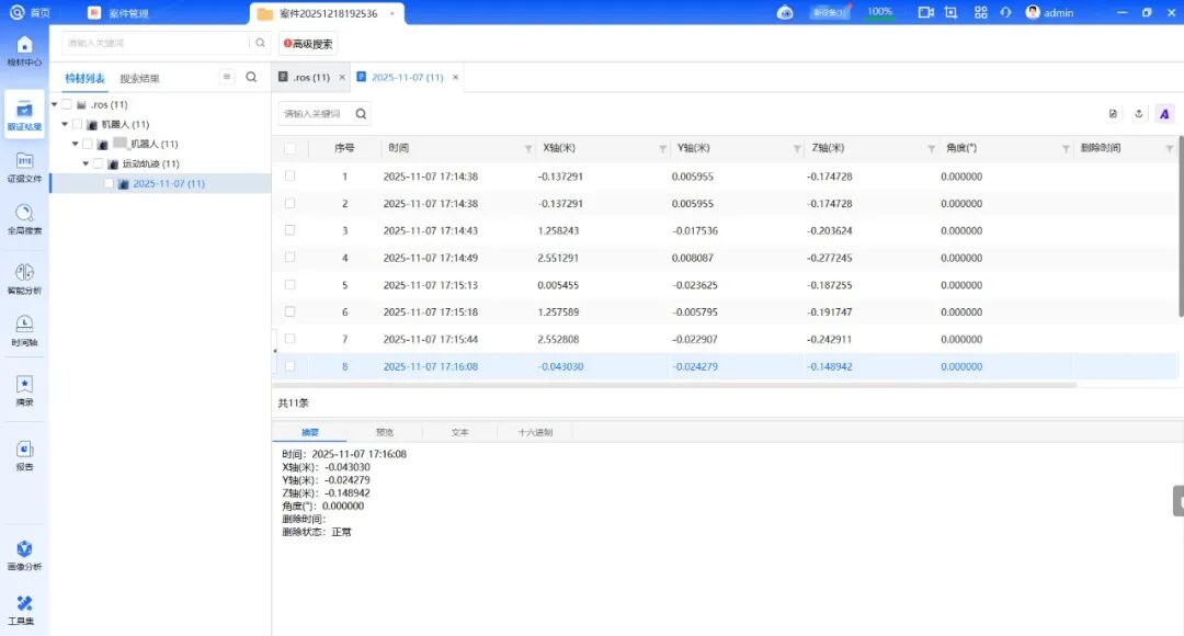 机器机身数据取证结果(设备载体)