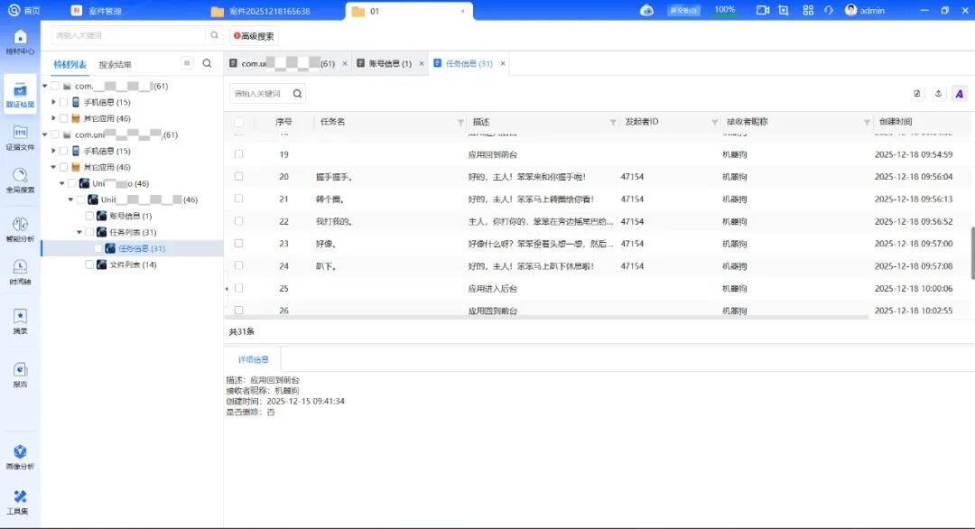 机器人与机器狗取证融合了电子数据取证、物联网设备取证、传统物证取证等多领域技术。其中,作为控制终端核心的手机端,以及承载设备运行关键数据的机器机身,是取证工作的两大核心载体,其取证结果直接决定证据链的完整性,以下结合实战场景详细拆解二者取证过程,使用美亚柏科“超级取证大师”取证工具完成数据提取和分析。