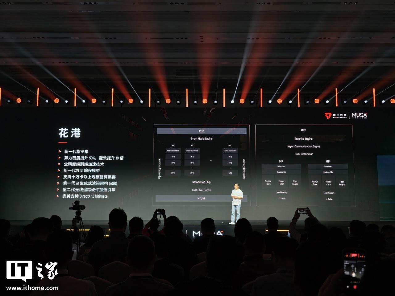 IT之家12月20日消息,摩尔线程今天举行MUSA开发者大会,发布全新“花港”架构以及MUSA5.0全栈软件升级,并发布“华山”、“庐山”两款芯片,分别主打AI推理训练一体、高性能图形渲染场景。