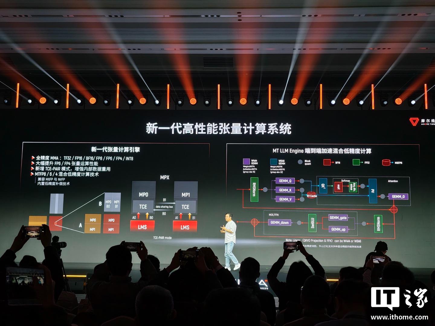 具体来说,“华山”芯片具备新一代张量计算引擎,拥有TF32/FP16/INT8等全精度MMA,可大幅度提升FP6/FP4的张量运算性能,新增TCE-PAIR模式,增强内部数据重用,还配备MTFP8/6/4混合低精度计算技术,兼容MXFP和NVFP。