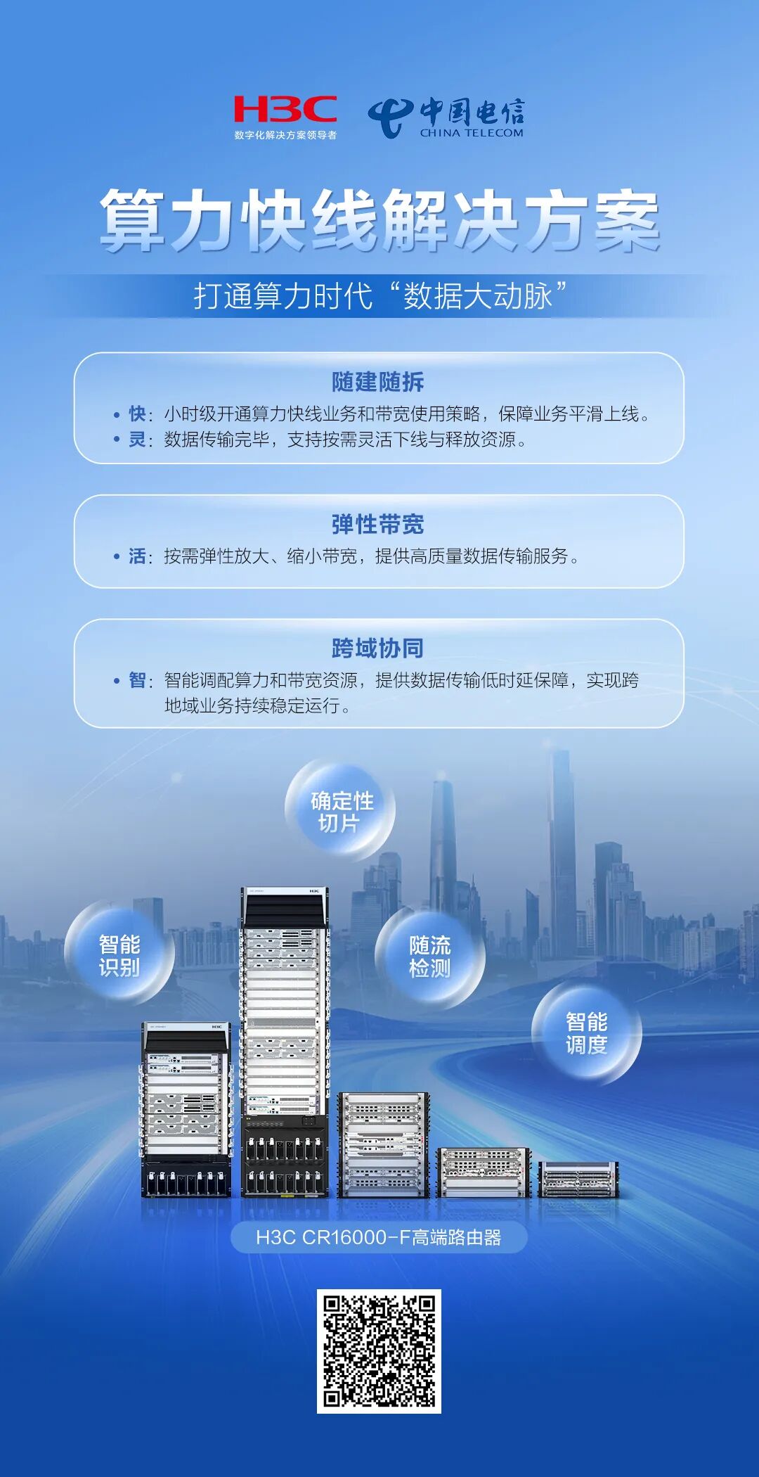 展望未来,新华三集团将继续与中国电信等生态伙伴携手共进,推动算力快线解决方案的应用实践,并持续深耕IPv6+前沿网络技术,推动算力网络融合创新,为构建高效、智能、弹性的数据流通网络夯实数字根基。