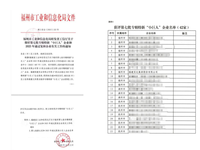 近日,福建实达集团(600734)股份有限公司(以下简称“实达集团”)成功入选由工业和信息化部(以下简称“工信部”)认定的第七批专精特新“小巨人”企业名单。