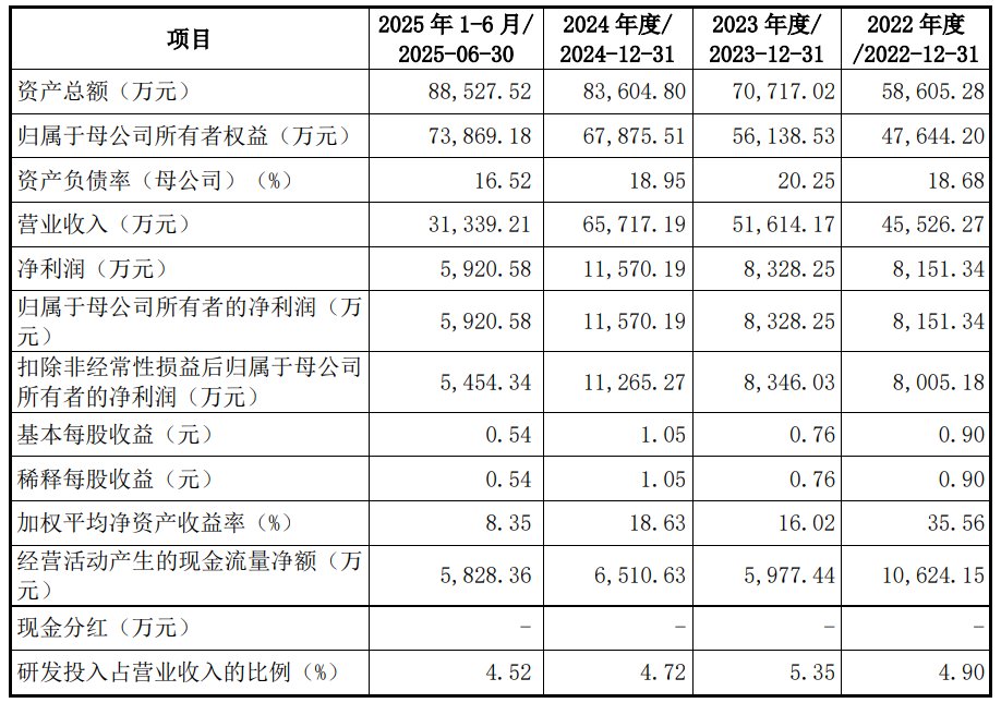 财务方面,于2022年、2023年及2024年,公司实现营业收入分别约为4.55亿元、5.16亿元、6.57亿元人民币;同期净利润分别约为8151.34万元、8328.25万元、1.16亿元人民币。