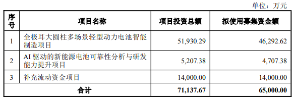 博力威首次公开发行股票募集资金总额为6.48亿元,扣除发行费用后,实际募集资金净额为5.80亿元。博力威最终募集资金净额比原计划多1.40亿元。博力威于2021年6月7日披露的招股说明书显示,该公司拟募集资金4.40亿元,其中3.16亿元拟用于轻型车用锂离子电池建设项目,5150.81万元拟用于研发中心建设项目,3194.24万元拟用于信息化管理系统建设项目,4000.00万元拟用于补充流动资金。