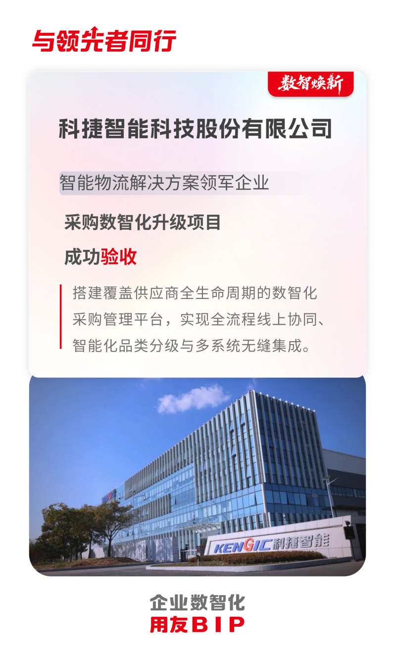 本次项目的落地是科捷智能采购数智化转型的重要里程碑。随着平台的深度应用与持续迭代,数智化采购与供应链管理能力将成为支撑企业全球化发展的核心竞争力。未来,用友BIP采购云将持续携手科捷智能,共同探索智能制造企业采购与供应链数智化转型的领先实践,助力企业在全球化竞争中抢占先机。