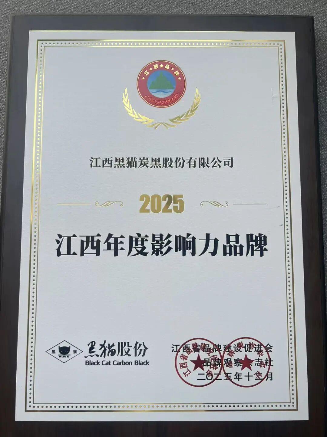 江西黑猫炭黑股份有限公司荣获2025江西年度影响力品牌