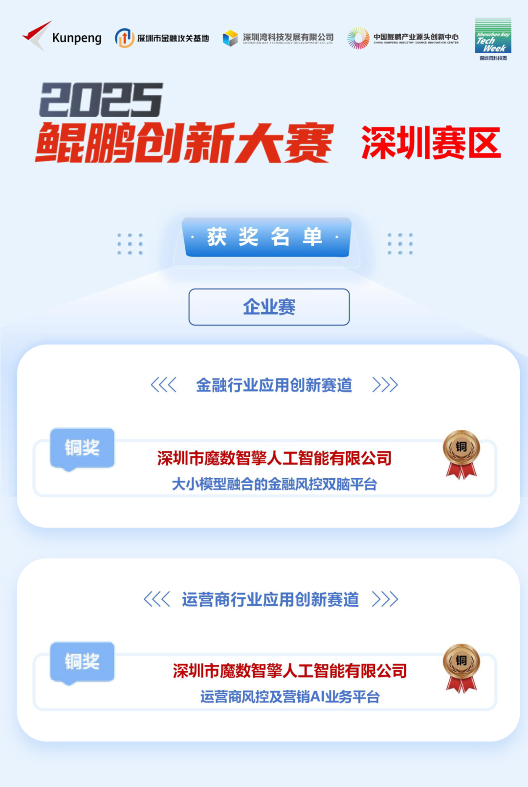 在“鲲鹏应用创新大赛2025”深圳赛区决赛中,魔数智擎凭借基于鲲鹏全栈底座打造的行业解决方案,一举夺得金融及运营商双赛道铜奖。该方案在模型开发、特征工程、高并发计算等环节实现显著效能突破,展现了扎实的鲲鹏原生开发与行业赋能能力。